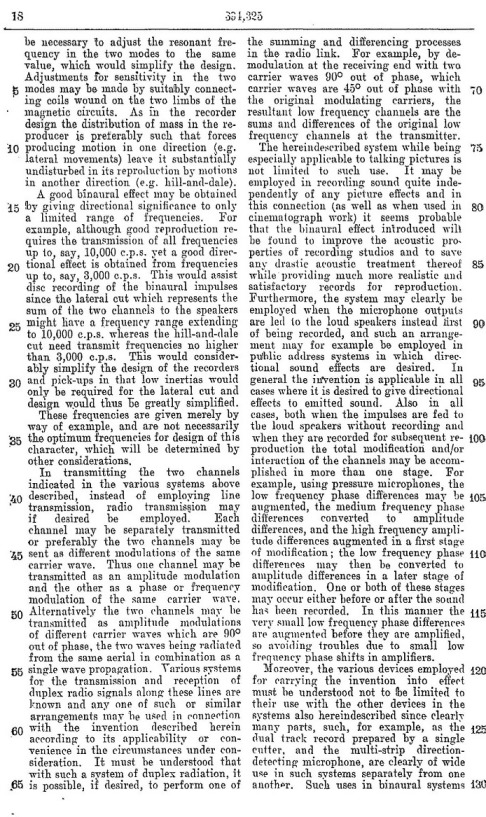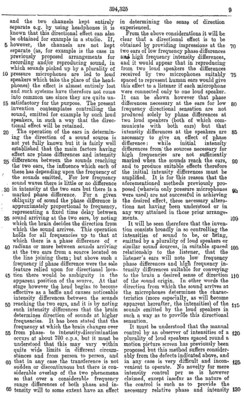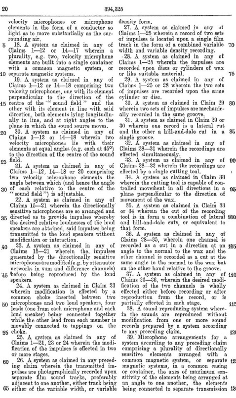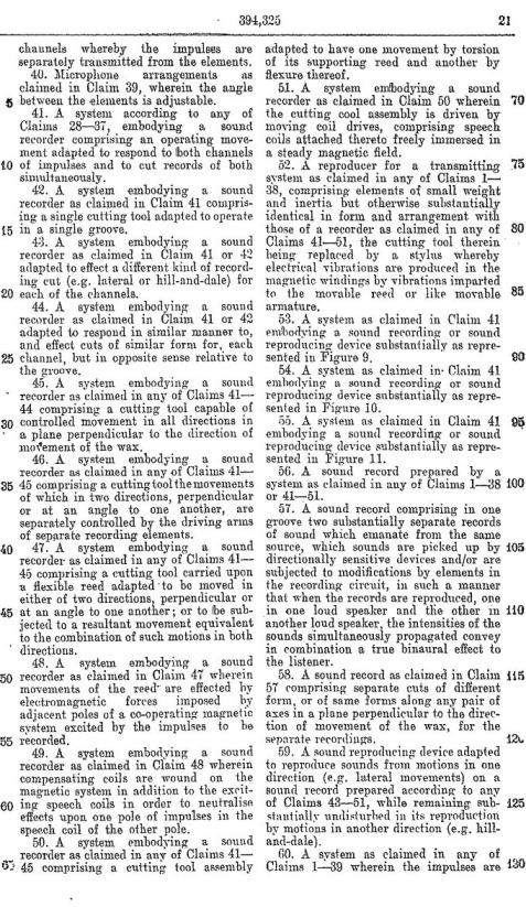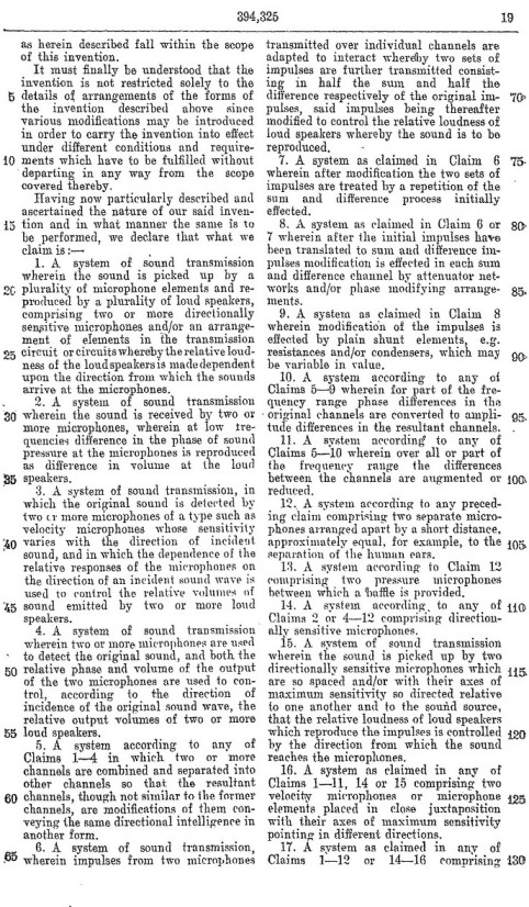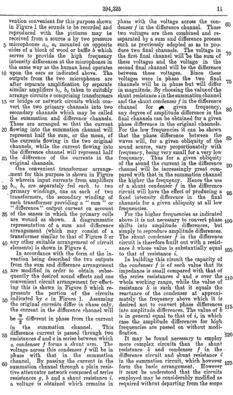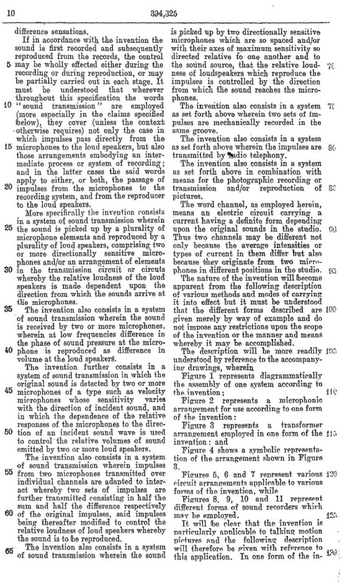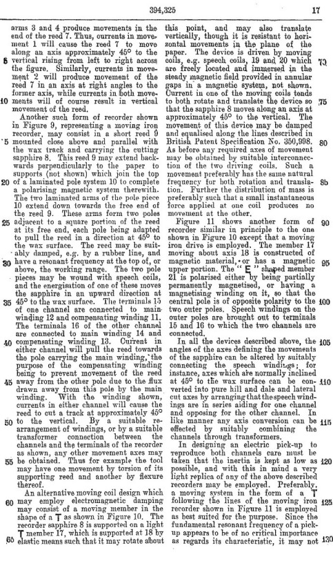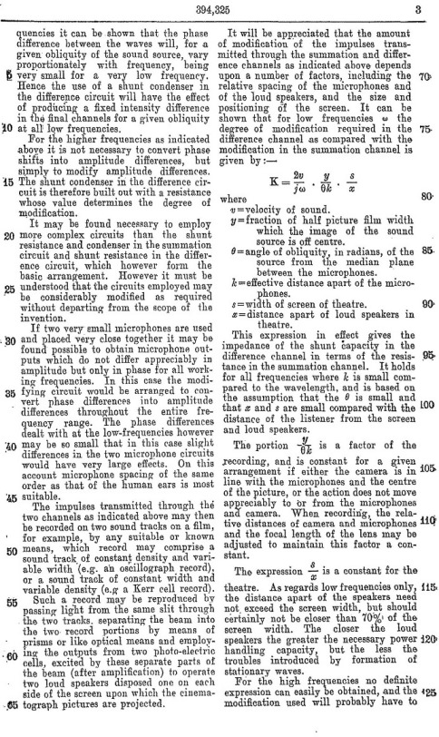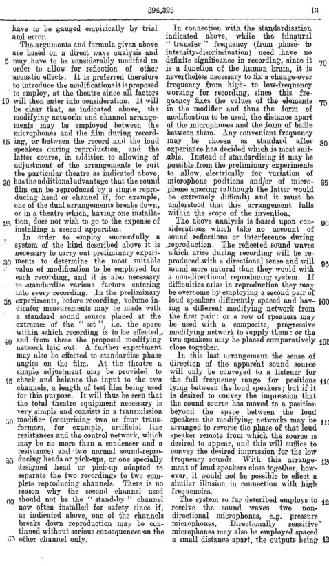 Blumlein's Historic PATENT SPECIFICATION. No: 394,325