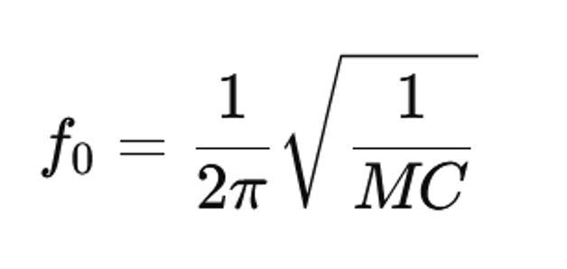 More commonly this transition frequency is known as the arm resonance frequency (f0), because of an unfortunate consequence of these two physical components. For all the good the stylus compliance does, it undoes at the frequency where the compliance resonates with the rotational moment of inertia of the tonearm. Just as a weight hanging from a spring has a natural resonance frequency, so do the compliance of the stylus assembly and the effective mass of the pickup-arm assembly. The frequency of this resonance (f0) is calculated as,